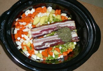 1 El gerebeltes Bohnenkraut dazu. Das Rauchfleisch im Ganzen auflegen