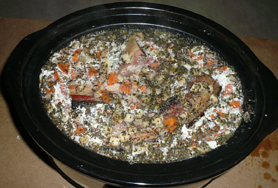 Nach acht Stunden war das Ganze einem Erbseneintopf nicht unbedingt ähnlich. Der Stärkeschaum von den Erbsen lag obenauf – sah ein bisschen aus wie Tauwetter...