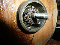 Drahtbündel von 0,8 mm Eisendraht - rechts und links sind massive Eisendeckel