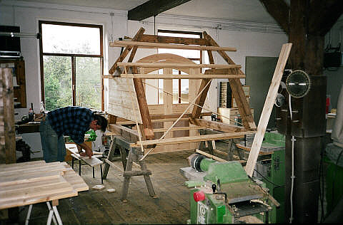 Nun gingen die Schreiner der Firma Jungk an die Arbeit und fertigten das Taubenhaus - genau nach dem alten Original.